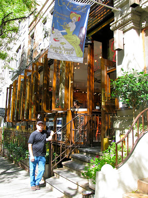 By Day...A Wood carved pumpkin and turkey sit in front of the biscotti jars.